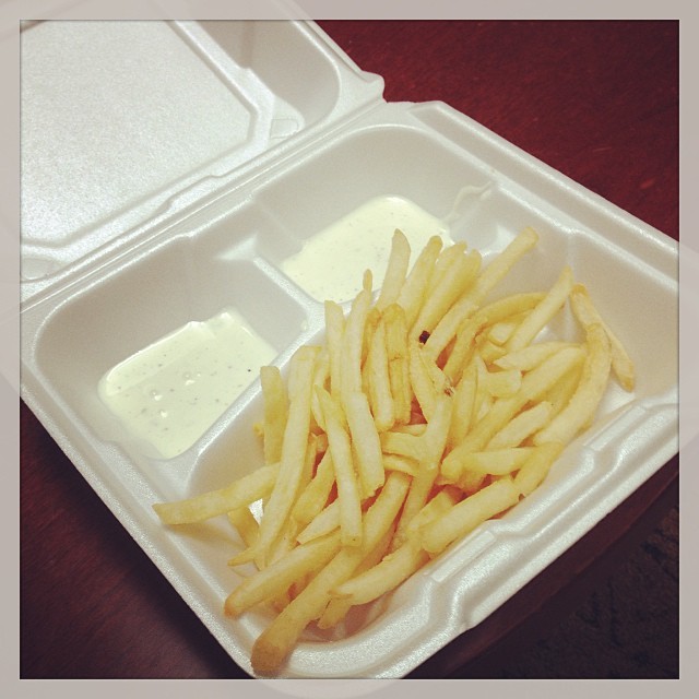 I got a healthy BMI today at the Wellness screening, so I’ll celebrate by having fries and ranch dressing #innerfatkid (at Ops Building 3)