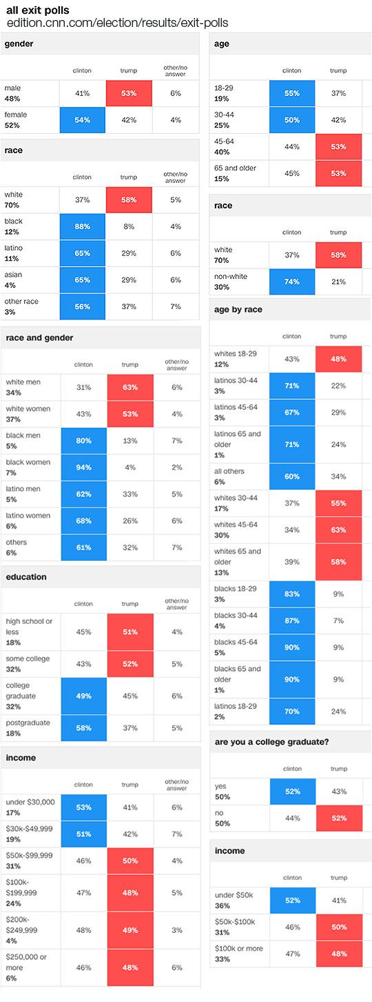 Hillary takes responsibility for private email servers and apologizes. Not credible. Trump denies saying things (on the record) he actually said (on the record), he’s just telling it like it is.