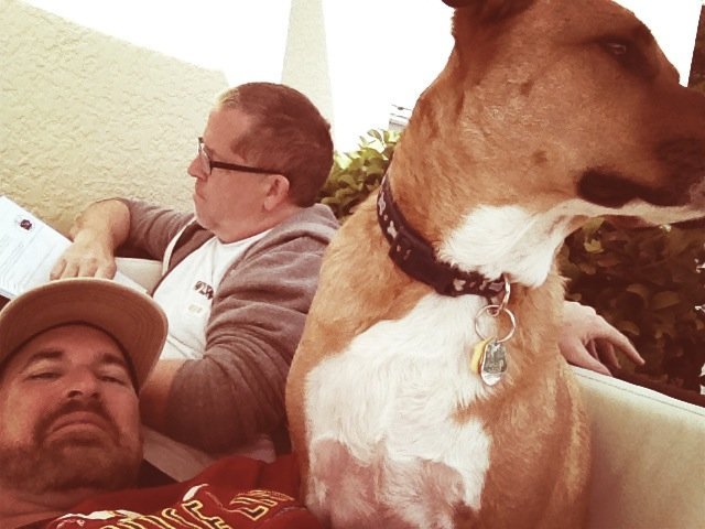 Relaxing on the patio with the hubby and pup