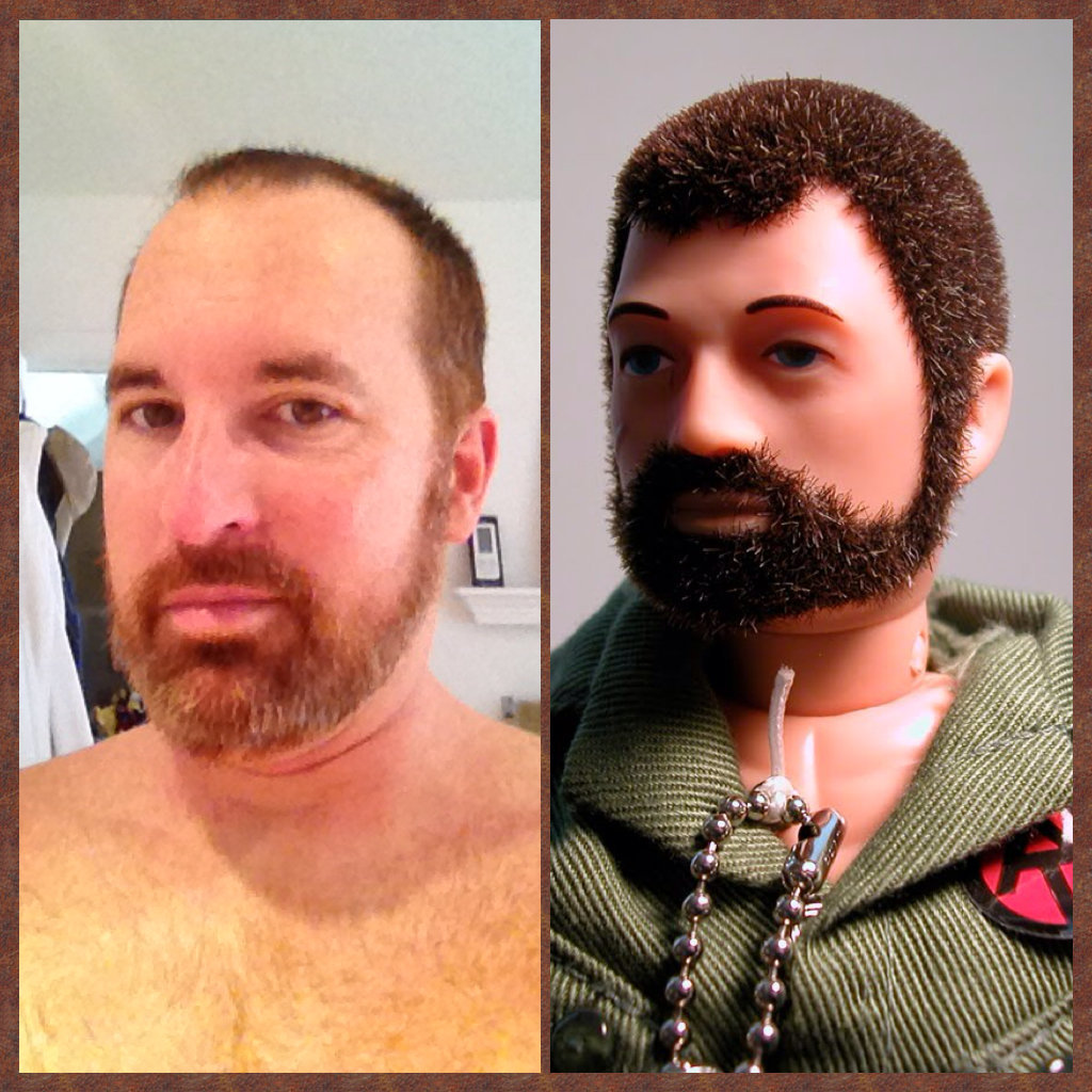Just did a quick coloring to get the gray out of my beard. Someone once said that with my hair trimmed short and my dark-colored beard I remind them of the old-style G.I. Joe action figure. Pretty good considering my name is Joe. #gaybear #gaybearcub #gpoy #scruff #beard #Beards