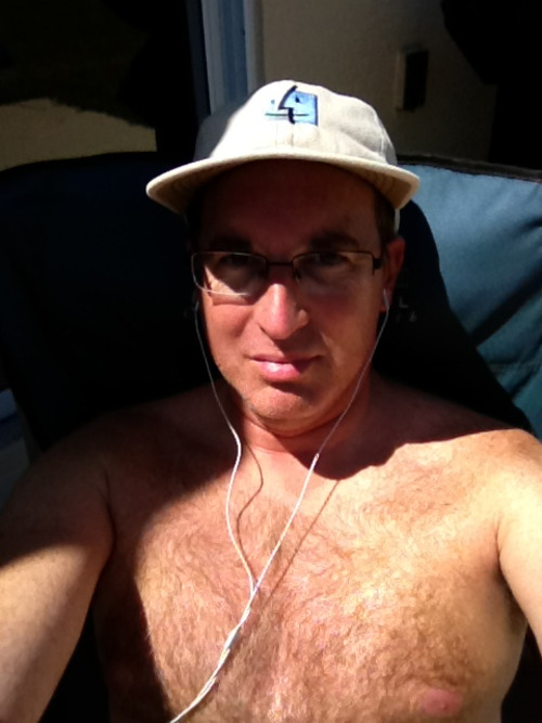 Relaxing in the yard with the hubby and our dog. Too many screaming kids at the pool.